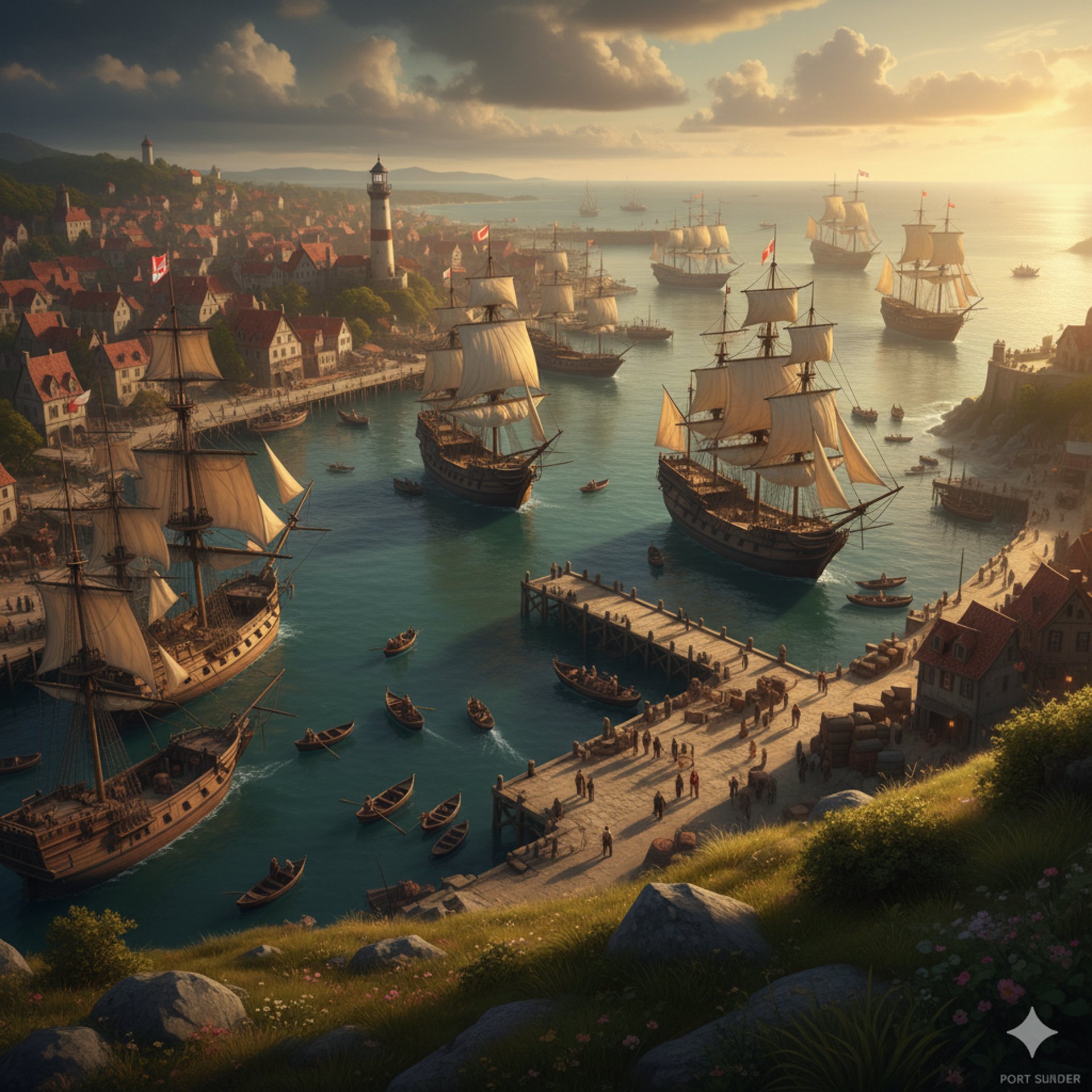 Port Sunder wasn't carved from mountains or grown from magic trees; it was built by human hands and resilience, right here in the Greenriver Vale. Founded in the wake of the legendary Battle of the Sunder Coast, where High King Alaric himself broke the Ashen Invasion, our city bears the name of that great victory. We've always been fiercely independent, the largest human city on Lythos, governed not by royalty but by an elected Council. Our lifeblood is the sea and the trade it brings from every corner of Mythra – Keshian spices, Solterran silks, Skaldvin star-ice. We're a melting pot, rough around the edges, maybe, but we endure. Even now, with shadows gathering and strange troubles stirring in the crypts nearby, Port Sunder stands – a gateway to the world, ready for whatever the tide brings in.