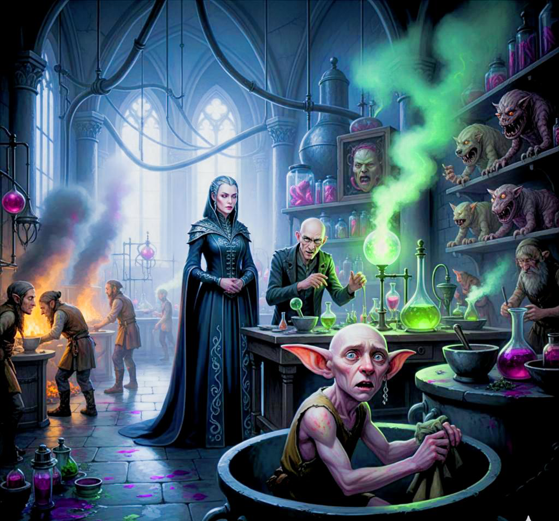 You're an idiot. This is Saphira's Laboratory. Off-limits. Seriously. This ain't like Gorgash's crude bone-magic pits. This place is clean, sterile, and cold . The air smells of strange herbs, ozone, and chemicals so sharp they could peel the skin off a troll. You hear that hissing? That's just the stuff that's contained. Saphira and her pet archivist, Zeth, are in here "improving" on nature.
