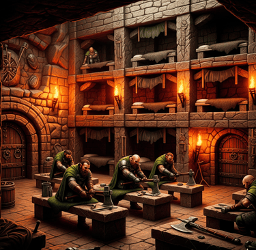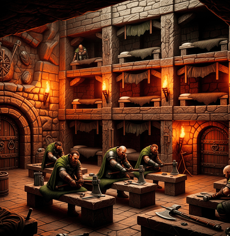 (The air in the Great Forge is heavy with heat and the rhythmic clang of dwarf hammers on steel. Captain Grimgar, his face a grim stone carving, turns from the fire. He holds a battle axe, its edge reflecting the magma fed glow, and a freshly cleaned green cloak. The powerful sound of industry ceases as he speaks.)