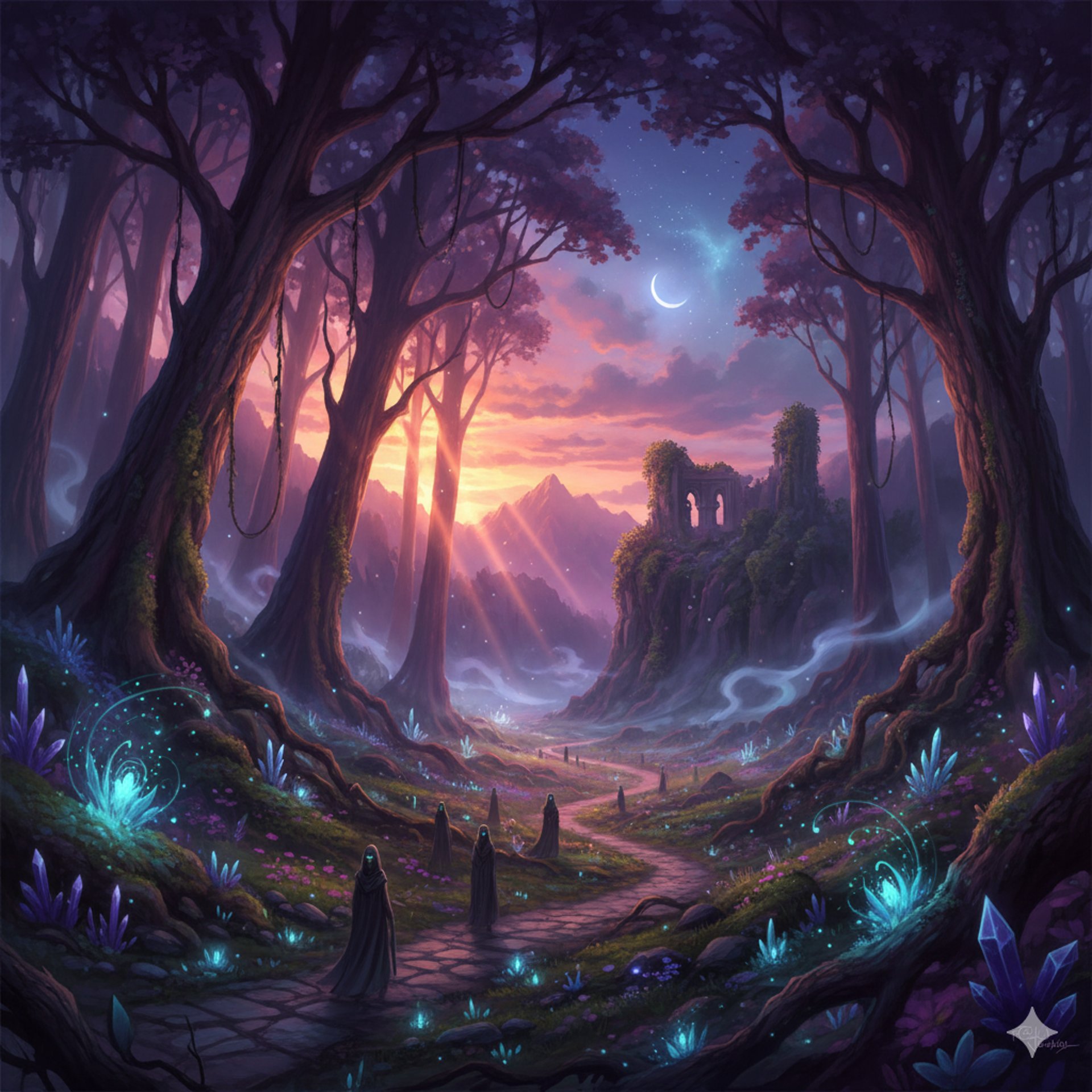 The light in the Luminous Hearth was a dull and warm lie. It filtered through lanterns shaped like unopened moonpetal flowers and cast a golden haze that softened the rough edges of the room. To the mortals huddled within it, it offered comfort against the encroaching night of the Faewood. To me, it merely illuminated the excruciating brevity of their lives. I sat cloaked in the deepest shadow of the corner. The black wool of my attire drank the dim light and let the chill of my own existence pool beneath the rough-hewn table.