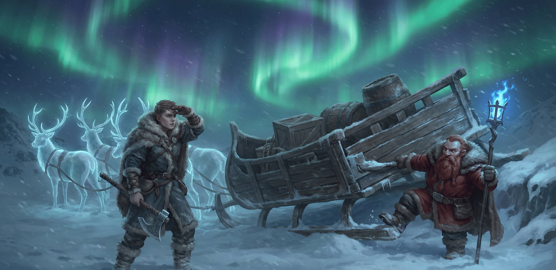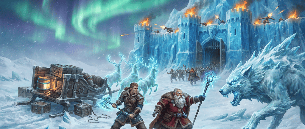 It is the Night of the Star Ice, the longest, darkest night in Boreas. Outside the blue ice fortress of Skaldenhold, a blizzard screams and elemental horrors hunt. Inside, the vital fires are dying. When a dutiful Ironkin warrior crosses paths with a stranded Dwarven logistician and his magical war-sled, a simple ceremonial offering transforms into a desperate, high-speed race against the freezing void to keep the hearths of the North burning.